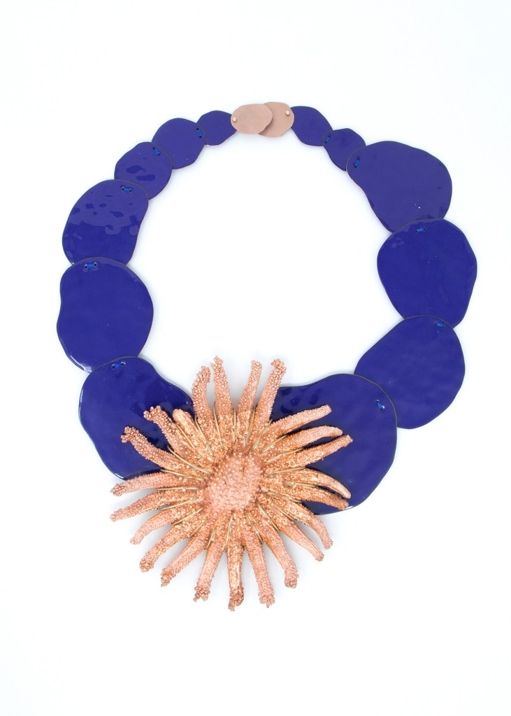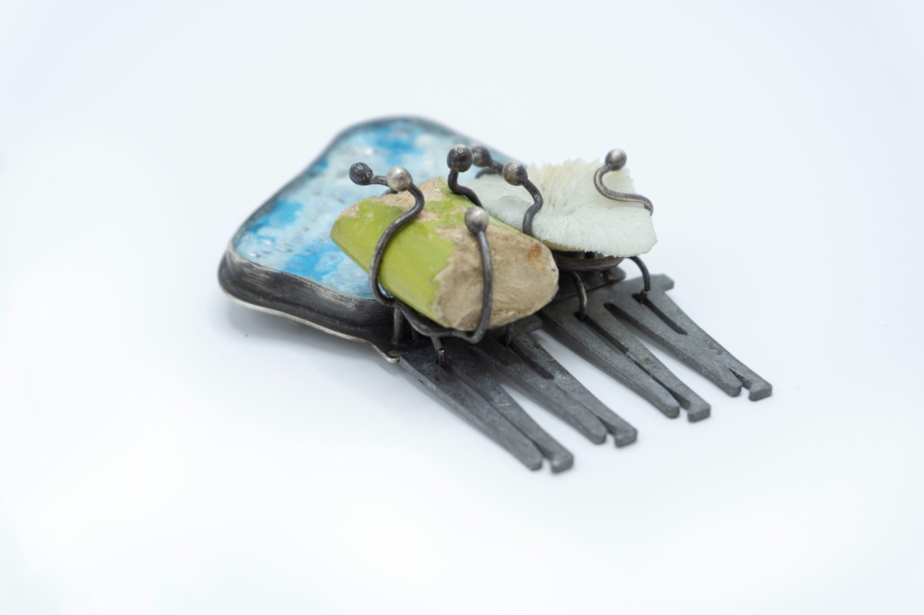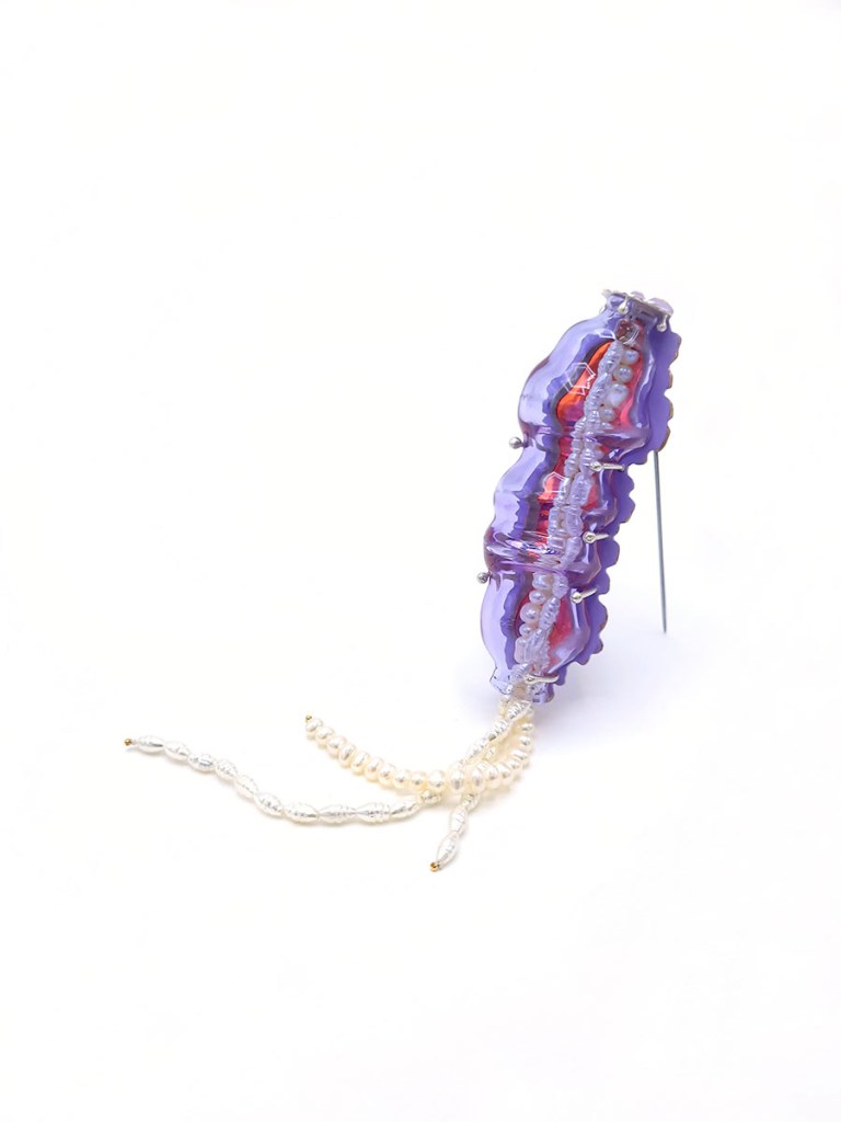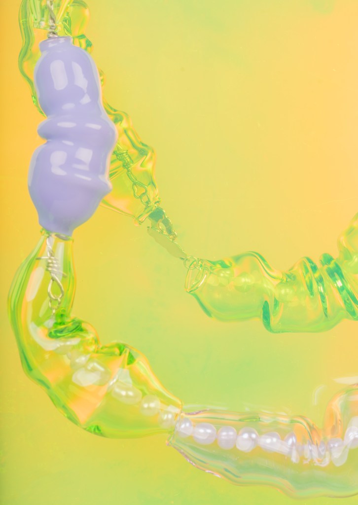 My practice explores the tension and harmony between fragility and strength, visibility and concealment, interior and exterior. Working primarily in metal and blown glass, I create intimate, wearable objects that engage with the body as both a site of transformation and a vessel for care. Glass, with its fluidity and fragility, evokes queerness, vulnerability, and the mystical. Metal, by contrast, offers a sense of grounding and durability. Together, these materials mirror the dualities I navigate as a queer, invisibly disabled, Latinx artist grounded in nepantla– a Mexica word for spaces of in-between.